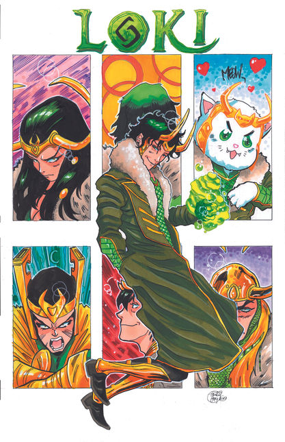 These commissions are either 9x12 or 11x17 and are colored with Posca paint pens, copic, and Prisma markers. All original pencils and inks. If interested in a commission, please contact me through the contact form, or through one of my social media outlets.